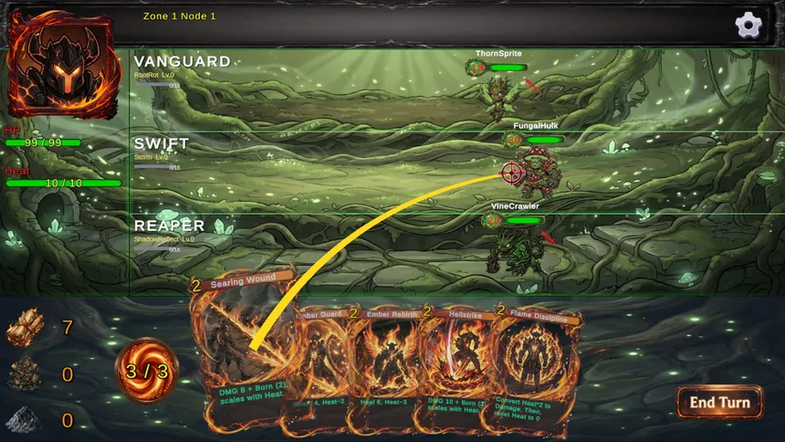 Roguelike deckbuilder where your battlefield scars as you fight. Push your lanes to the breaking point — or let them break you.