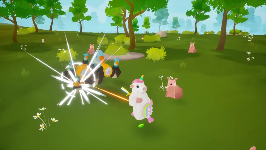 A short incremental bullet heaven game about becoming animals. Laser eye frog, unicorn cow, bomb slug. Each have their own abilities and weapons. Build weird builds and combos. Explore and find new animals. BECOME.