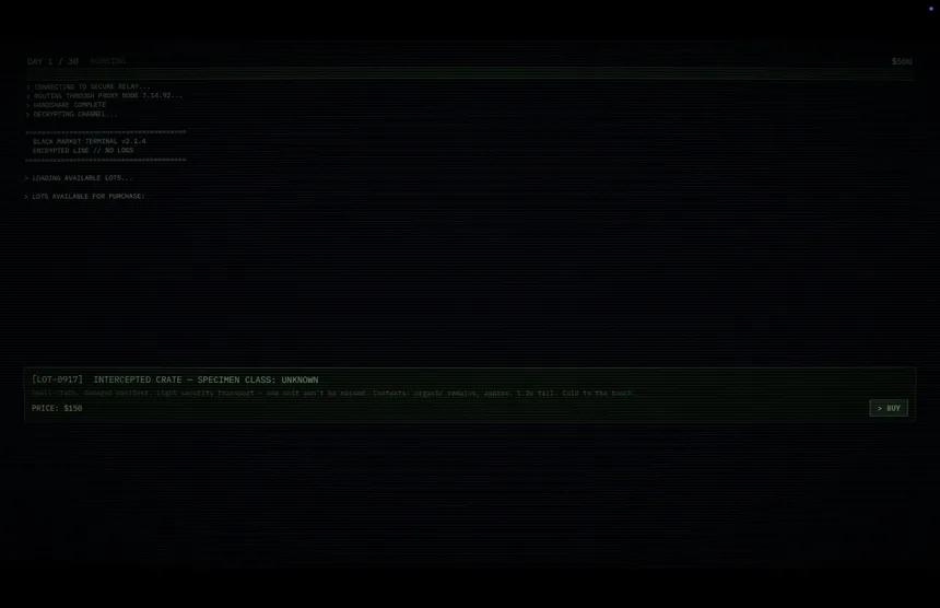 Buy alien remains off the black market. Cut them open on your basement autopsy table. Sell the organs to the highest bidder before the feds find you. A body-horror management sim set in Gary, Indiana 1993.