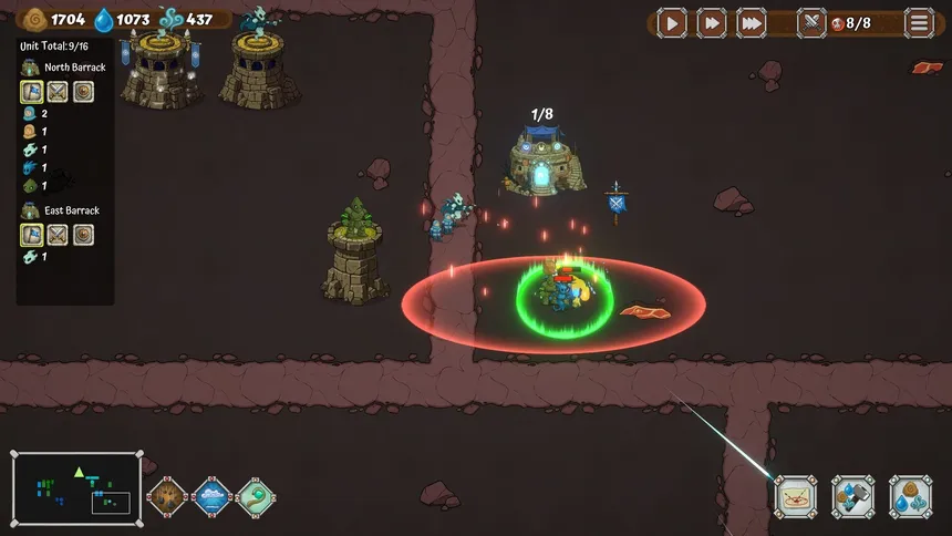 The Warden’s Rite is a dark fantasy Tower Defense set in a world consumed by the Fire God. As the Warden, command Earth, Air, and Water. Combine elements to create unique traps, block enemy paths to change their route, and place towers side-by-side to make them stronger. Defend humanity's last hope.
