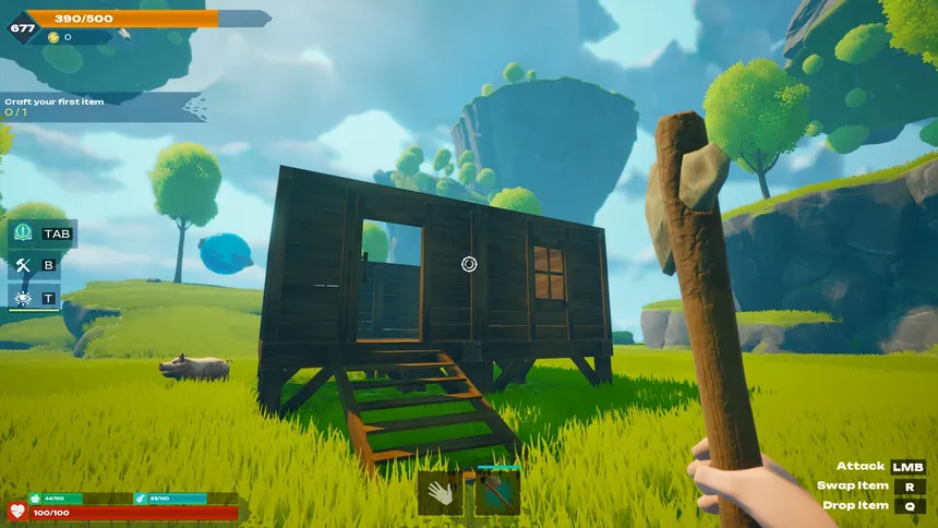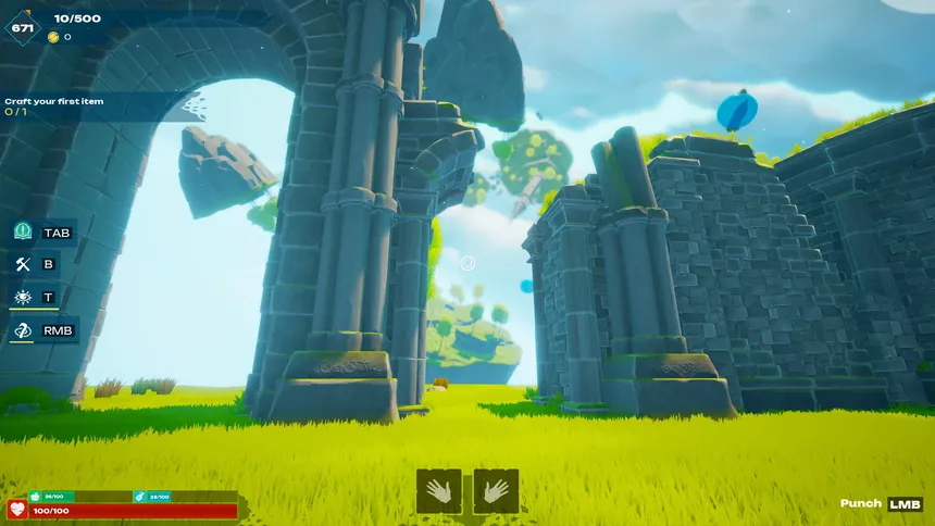 Kingdom Craft is a survival game in a world of floating islands with unique gravity. Craft items by combining different materials, explore, build, and progress to reach the ancient portal and return home.