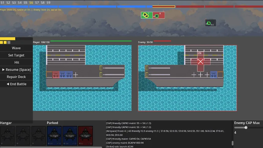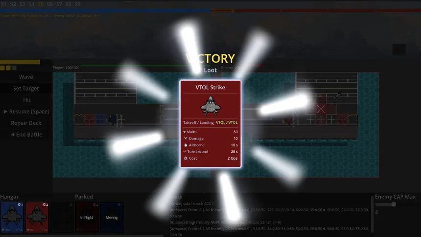 A roguelike strategy game about aircraft carrier deck operations. Plan your flight deck, manage aircraft as cards, organize strike waves, maintain air superiority, and keep your damaged deck running under pressure. Launching aircraft is only half the battle. The real challenge is getting them back.