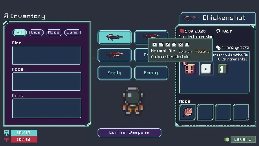 Guns roll dice. Dice trigger mods. Mods cause MAYHEM! Save the world from invading cosmic horrors by building crazy synergies with dice-driven weaponry.
