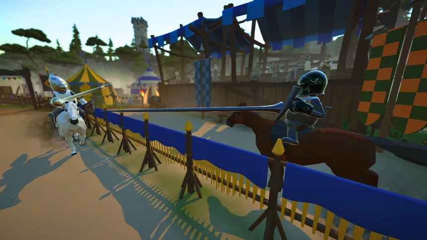 Joust, clash swords, and send your opponents flying in Tiltyard — a chaotic online PvP party game featuring wobbly knights, over-the-top physics, and medieval mayhem. Tilt or get tilted.
