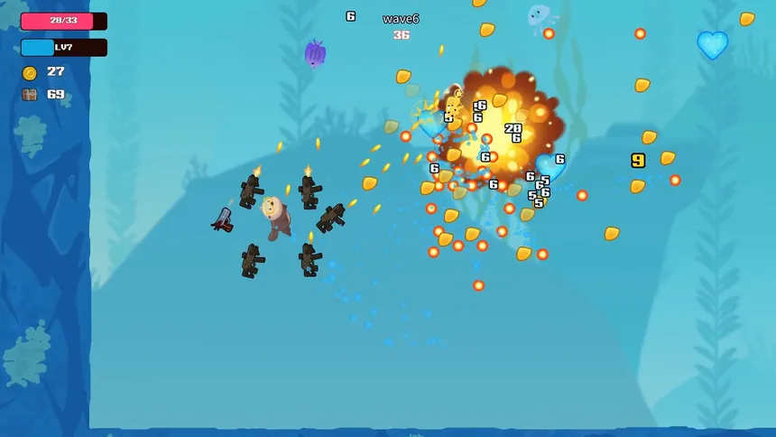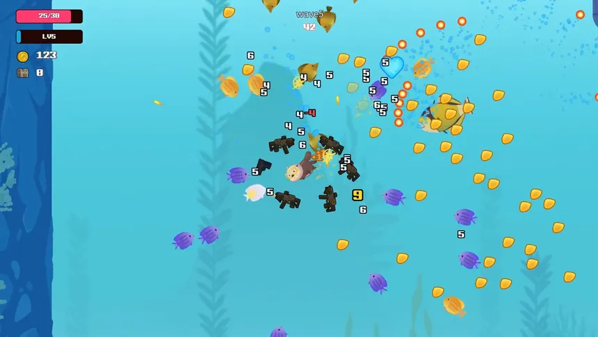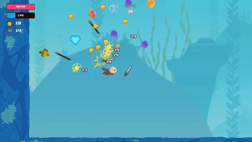 Убийца Рыб — это легкая игра в жанре roguelite с несколькими режимами игры и прокачкой вне забегов. Игрок выступает в роли животного, охотящегося на рыб, и усиливает себя, выбирая характеристики и предметы, чтобы повышать эффективность охоты.