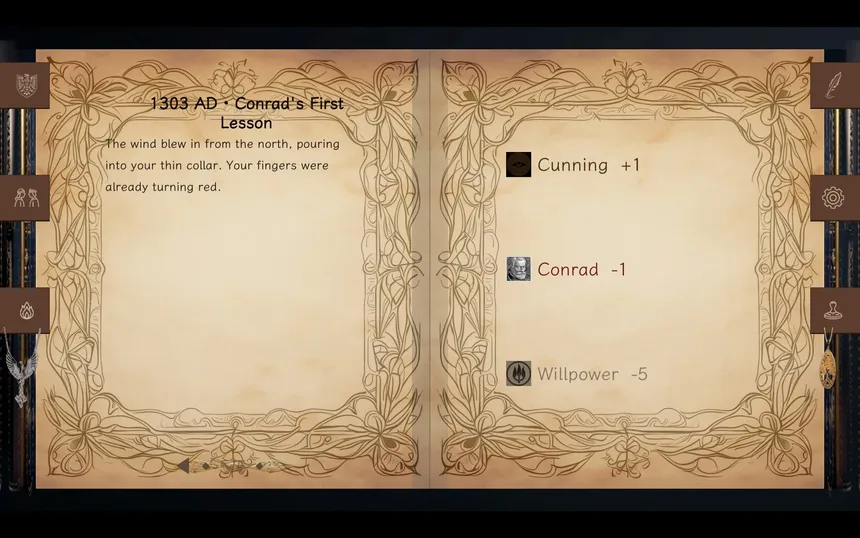 A narrative RPG of medieval intrigue and war. As Karl von Aiden, shape your destiny through five chapters of choices that matter. Build attributes, forge alliances, navigate court politics, and face consequences across three story routes and multiple endings.