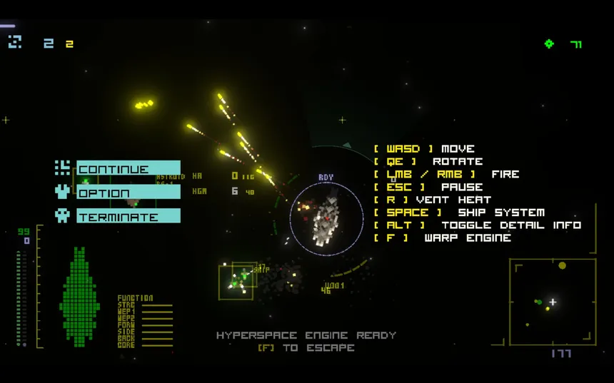 <Compleat> is a single player fast pace spaceship roguelike. Player controls a variety of rogue Ai ships ranging from destroyers to battleships, collecting resources and scavenging enemies. After upgrading tech and modifying modules all the data collected is uploaded to achieve the compleation.