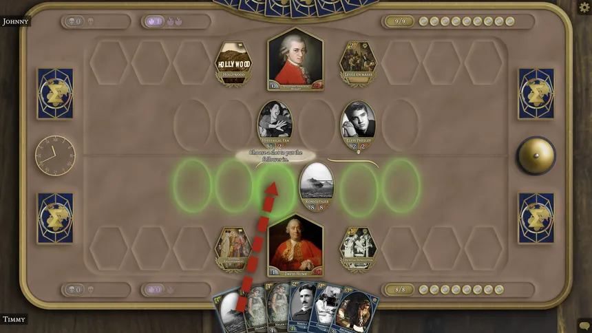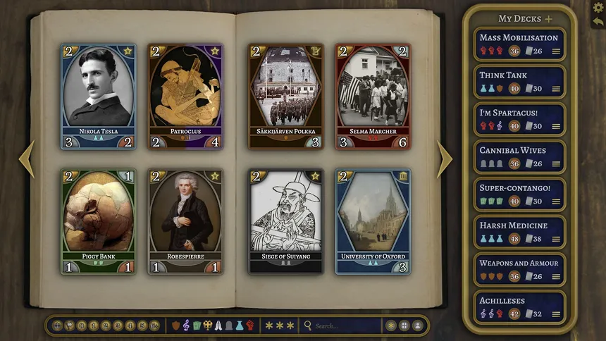 A historical TCG in the tradition of Hearthstone and Magic: The Gathering. Craft a deck from unlikely combinations of your favourite figures from across history. No grind, no microtransactions; everyone has all the cards. Play with friends: chat freely, share your decks, and compete to be the best!