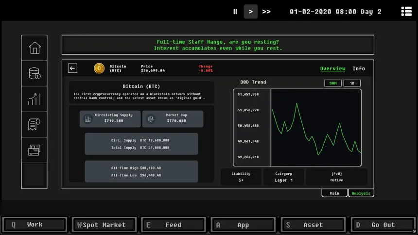 Achieve true financial freedom starting from zero. Save up your seed money through part-time jobs, dive into the crypto market, and use various apps including high risk futures and real estate trading to climb the wealth ladder in this realistic trading simulation.