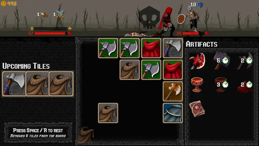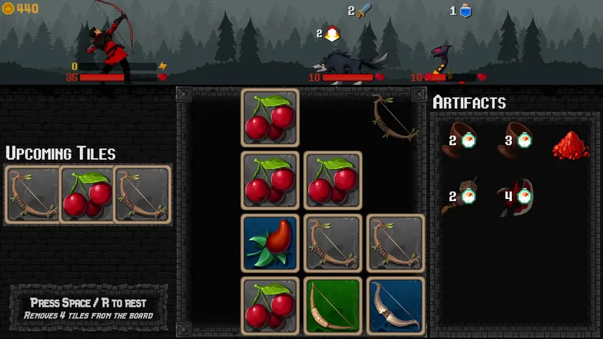 Merge weapons, shields and potions while moving through a strategic roguelike board battler. Collect 50+ unique artifacts, create game-breaking synergies and outsmart deadly bosses.
