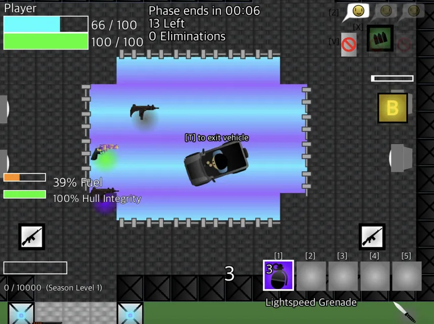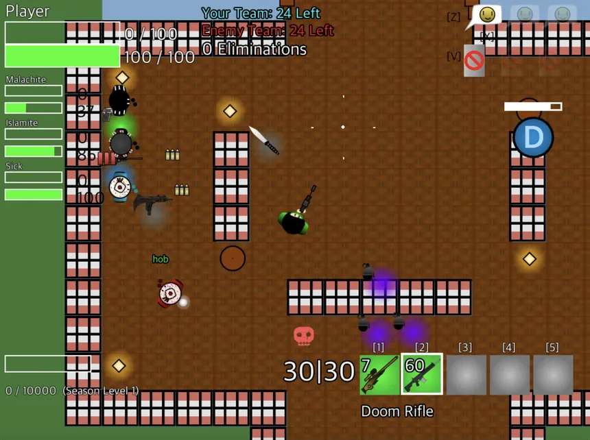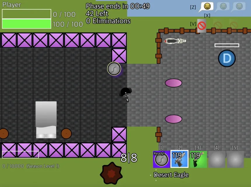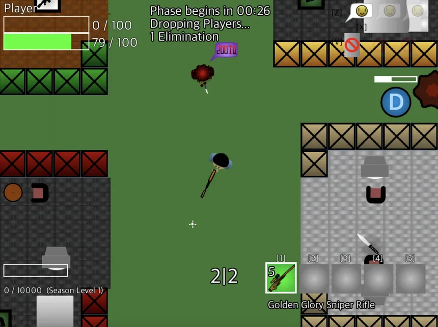 A top-down battle royale with... a style meter? An offline battle royale? I know you want to try battling with highly trained AIs that will put up a fight with even the most talented players! Customizable characters, a battle pass, challenges, and much more come in this free indie game!