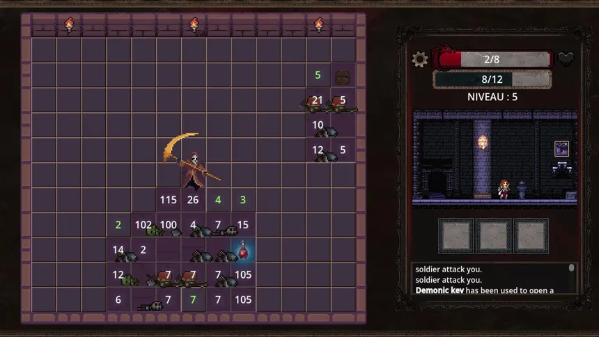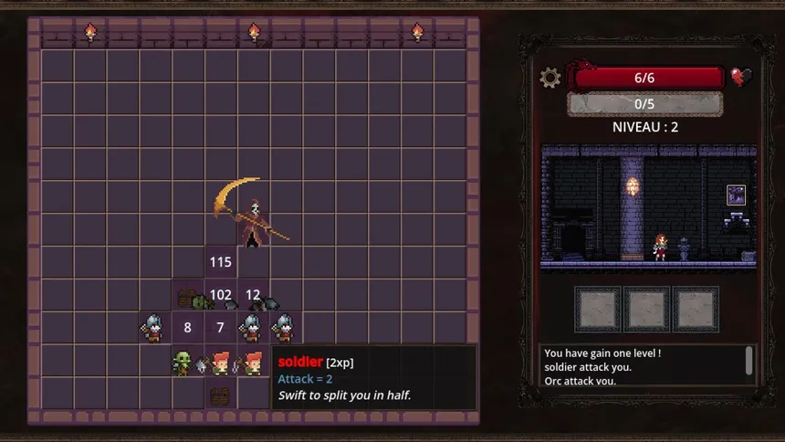Explore the dungeon in this roguelike twist on Minesweeper, where monsters replace mines. Defeat increasingly powerful enemies to vanquish the Reaper. Read the situation. Watch their behavior. Use your items wisely.
