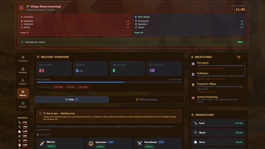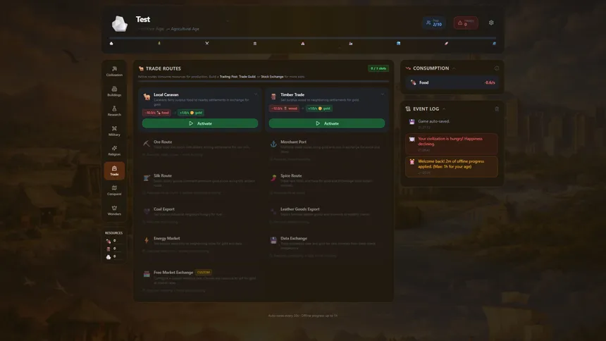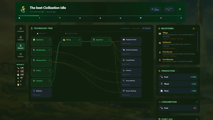 A strategy-driven idle game where you develop your civilization, research technologies, and make critical decisions to expand your empire across the ages.