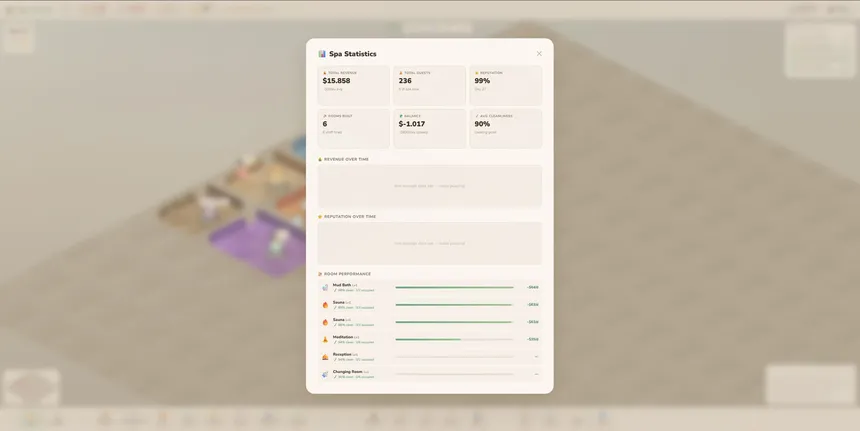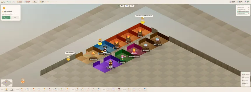 Spa World — уютная изометрическая игра-менеджмент, в которой вы проектируете и управляете собственным велнес-центром.