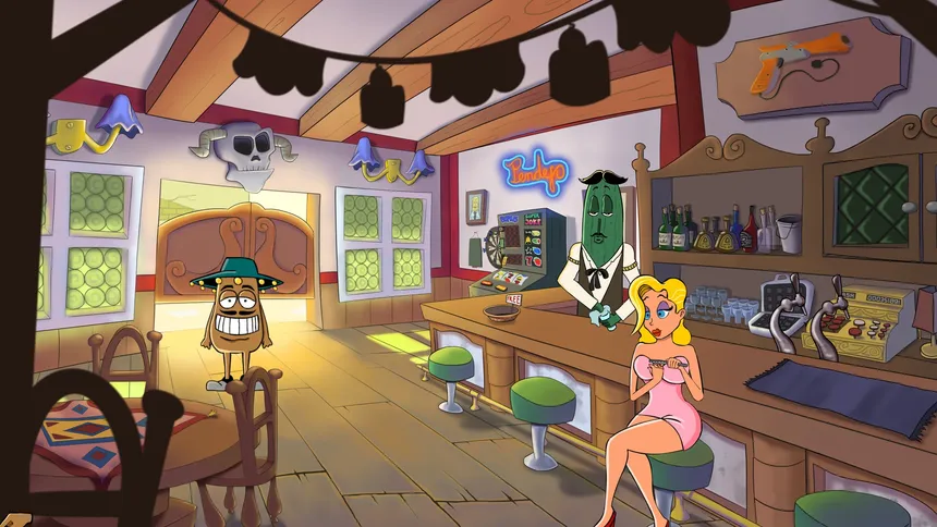 A LucasArts-inspired point-and-click adventure. Help AL Potato and his orange buddy Pancho collect and combine items, solve absurd puzzles, and charm desert weirdos — all in a desperate quest to reach Las Vegas. Hand-drawn art and offbeat humor throughout.
