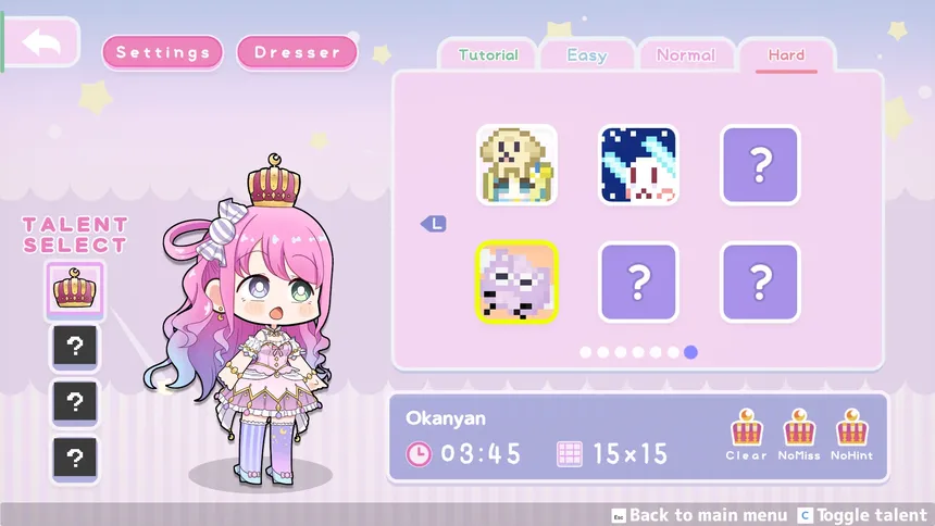 A pixel puzzle game featuring Hololive 4th generation member, Himemori Luna, is here! The Princess has discovered the joy of “drawing” and takes on pixel puzzles! Will she be able to feel satisfied in the end!?