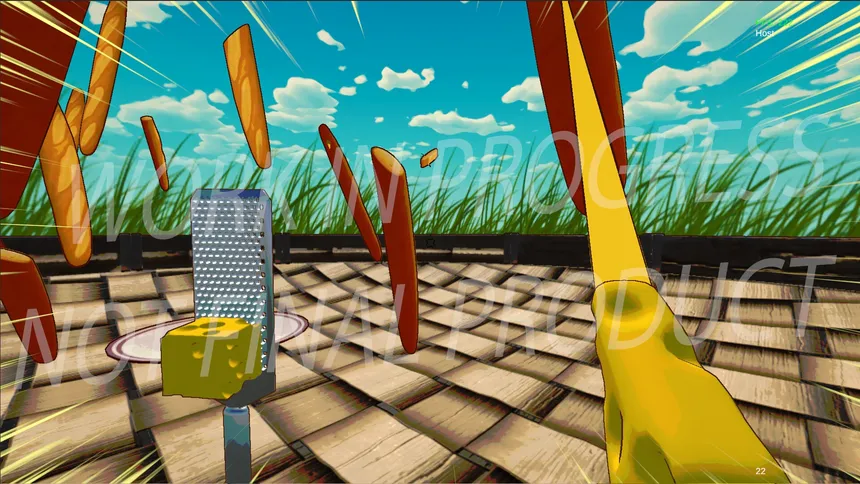 A fast-paced first-person arena fighter where everyone is cheese. Swing fast, shoot hard, splash chaos everywhere, and be the last cheese standing on the plate!