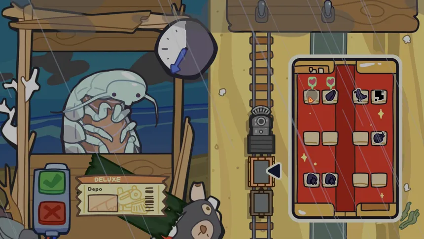 Work a day job at Crustacean Station checking identification and sending a vibrant cast of sea creatures to their desired destinations!