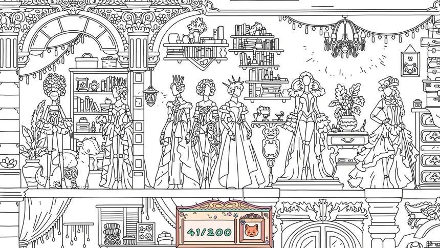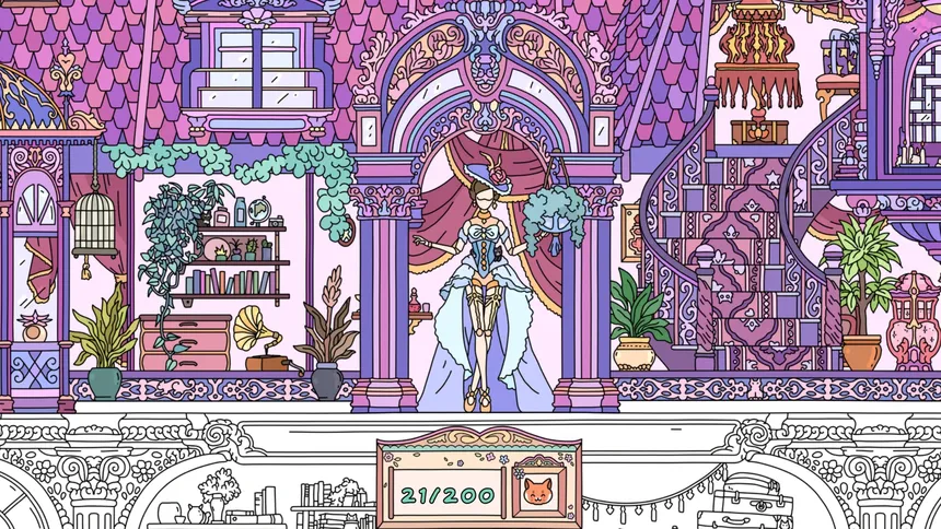 Исследуйте удивительный кукольный мир , находя милых кошек и раскрашивайте черно‑белые локации яркими красками.