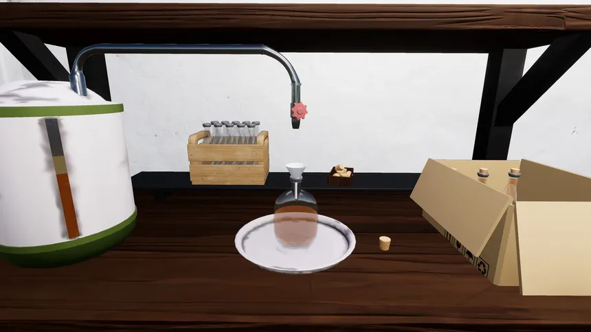 Run a small-town store by day and a secret bootleg operation by night. Produce homemade spirits, take risky phone orders, deliver on time, and manage the chaos caused by drunk customers, growing reputation, and police patrols.