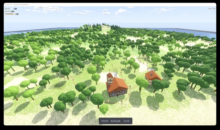 Novus Terminus: First Flags is a cozy logistics city builder. Found settlements, design road networks and watch your carriers transport goods from flag to flag. Three unique clans, visible supply chains and a handcrafted low-poly world await you.