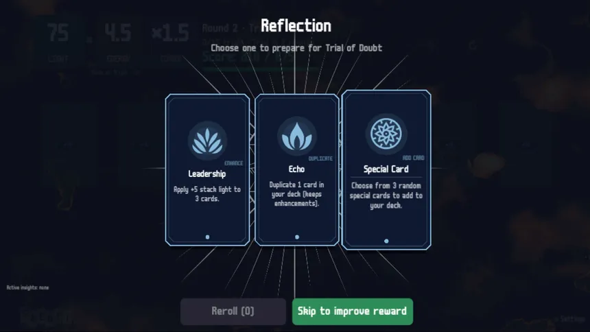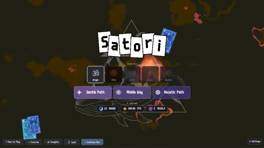 A strategic roguelike card game where you build powerful synergies, master evolving patterns, and pursue enlightenment through every run.