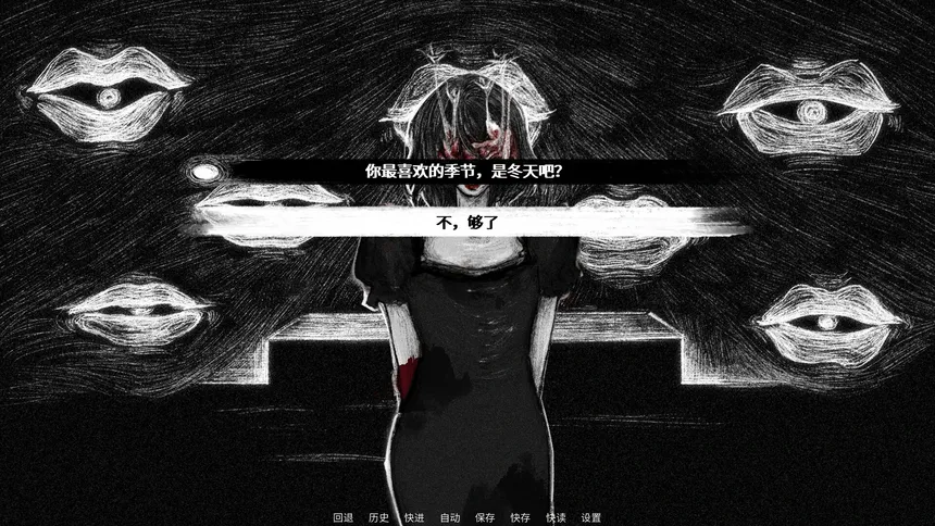 A narrative-driven psychological horror visual novel. Player's choices lead to distinct emotional paths and story outcomes. "You" navigate a shifting consciousness, making choices within fragmented scenes that buried memories.