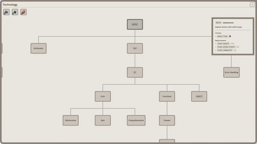 Program robots to build and sustain an outpost on an alien planet. Write real code to gather resources, build structures, and unlock new technologies. Automate everything and scale from a single bot to a thriving outpost. No coding experience needed — learn as you play.