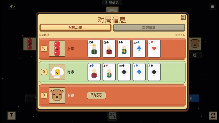 Guandan — это многопользовательская онлайн-карточная игра по мотивам классической китайской парной игры. Вас ждут полный режим продвижения, быстрые партии с двойкой червей как фиксированным козырем, онлайн-матчмейкинг и RL-боты — без платы за вход и с поддержкой многих языков.