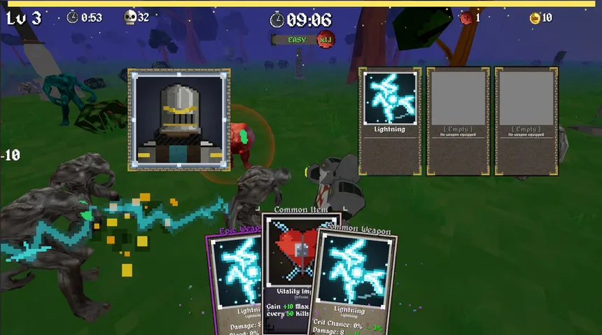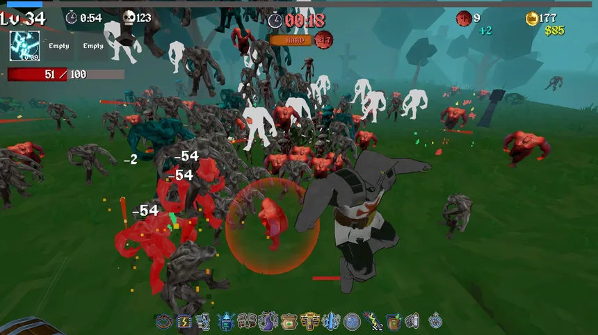 Locate and descend into the pit and tear through endless waves of demons with three weapons at once! Rip open card packs, stack powerful items, and build overpowered loadouts as you fight deeper into the horde! Something ancient waits at the bottom...