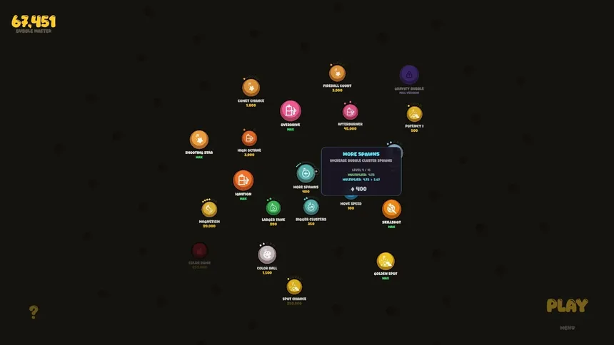 A short, satisfying incremental game about flying through space, popping bubbles, and harvesting Bubble Matter. Build combos, land skillshots for massive multipliers, and spend your loot in a sprawling upgrade shop.