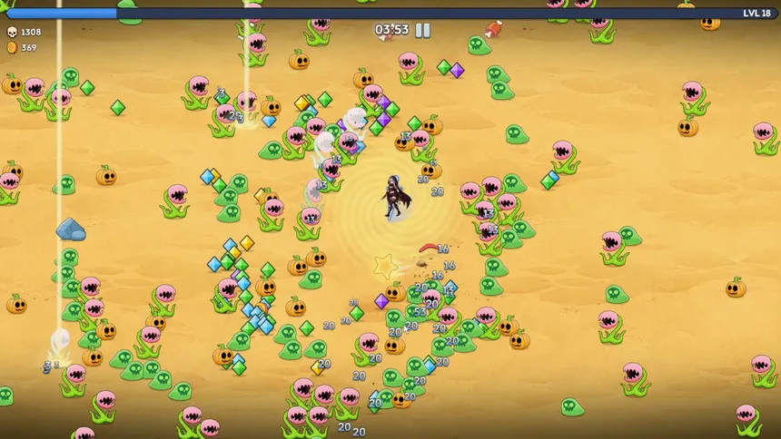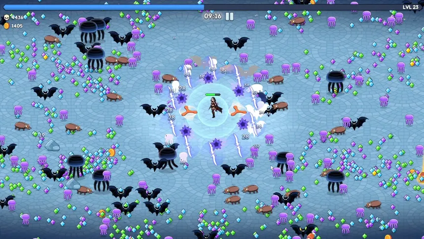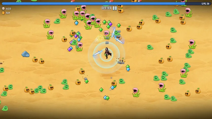 Вы играете за выжившего, попавшего в бесконечное поле боя. Сражайтесь с множеством врагов со всех сторон, получайте опыт за их уничтожение, повышайте уровень и выбирайте умения, формируйте свой боевой стиль и прорывайтесь сквозь окружение к победе!