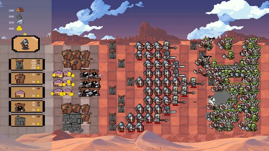 A fast-paced lane defense strategy game where you build your economy, place units, and defend your kingdom against relentless enemy waves across various bioms