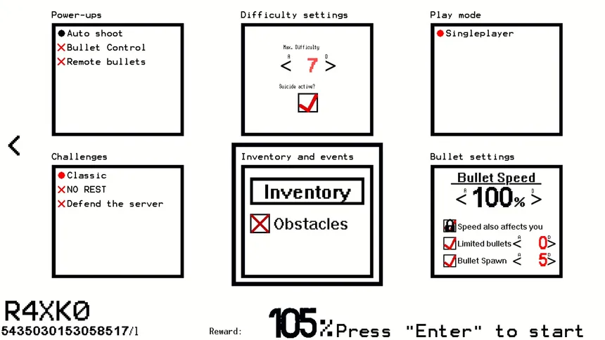 RISK YOUR LIFE IN HORROR. Risk it however you want: Play Russian roulette with up to 4 players, customizable bullets and gamemodes, or else, survive hard enemy waves also fully customizable. Buy items on the black market and create unique matches with your own personal touch. YOUR life, YOUR rules.