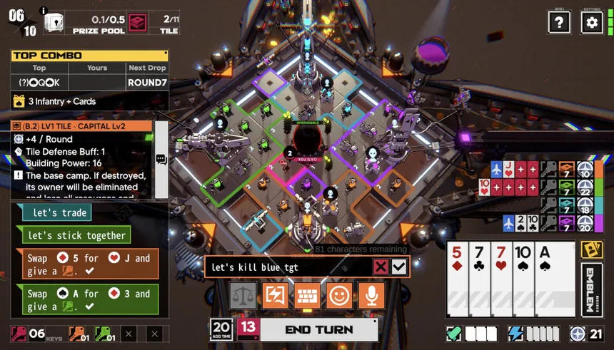 Duper — это PvP-игра в жанре социальной стратегии в реальном времени для 5 игроков, где вы развиваете экономику, торгуете ресурсами, создаёте союзы и атакуете соперников. Каждый матч сочетает переговоры, обман и тактические решения в борьбе за превосходство.