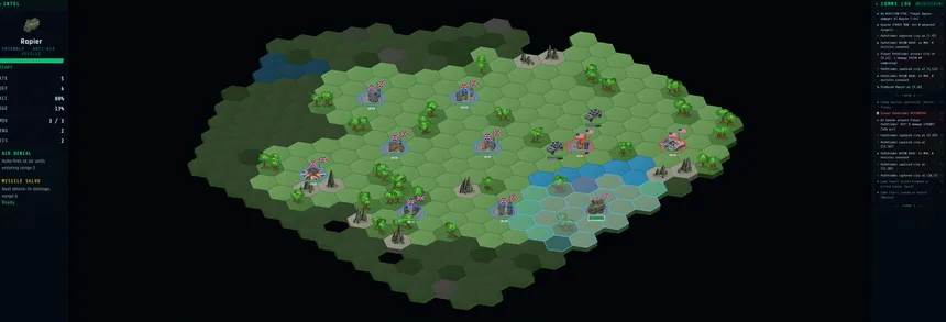 Command one of 10 doctrine-driven factions in a turn-based hex war where fog of war, terrain, and unit composition decide every engagement. Draft your army, seize territory, and outmaneuver your enemy across procedurally generated battlefields. Every decision is final. Every hex matters.