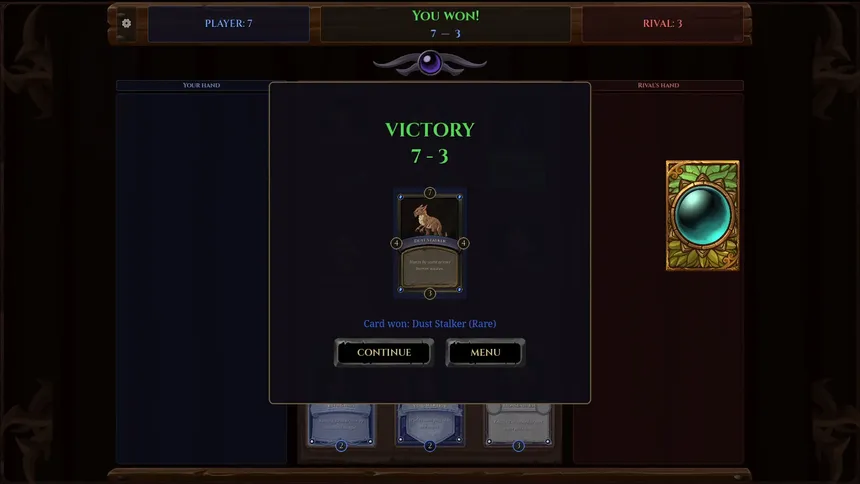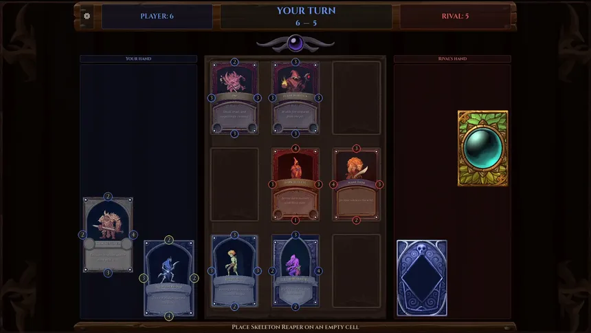 Карточная игра в жанре тёмного фэнтези, вдохновлённая Triple Triad. Соберите 320 рисованных вручную существ, составьте идеальную руку и перехитрите 48 соперников в 8 проклятых регионах. Без лутбоксов. Без pay-to-win. Чистая стратегия.