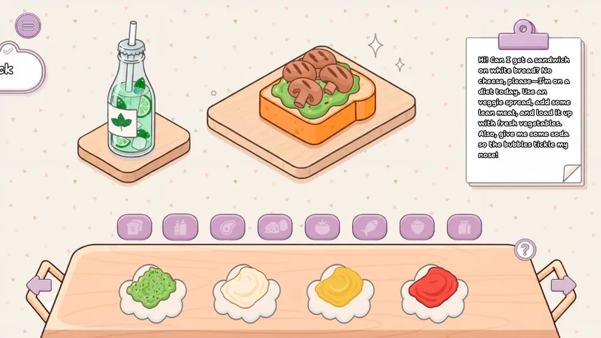 Make my Sandwich — милая головоломка о ручной сборке сэндвичей. Читай карточки и мышкой перетаскивай ингредиенты на доску, укладывая их слой за слоем. Учитывай диеты и вкусы гостей, подбирай напиток и соблюдай условия заказа, чтобы пройти уровень!