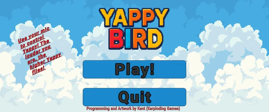 Yappy Bird is a voice-controlled descent into chaos. Your mic is your controller—your dignity is optional. Yell to flap, whisper to glide, fail in silence. Test your lungs, your neighbours’ patience, and your questionable life choices.