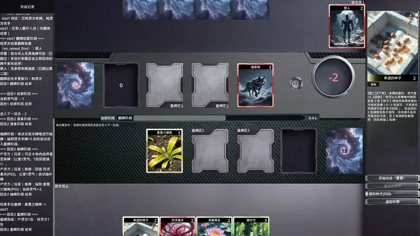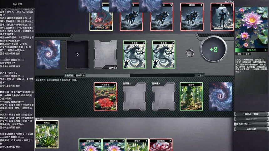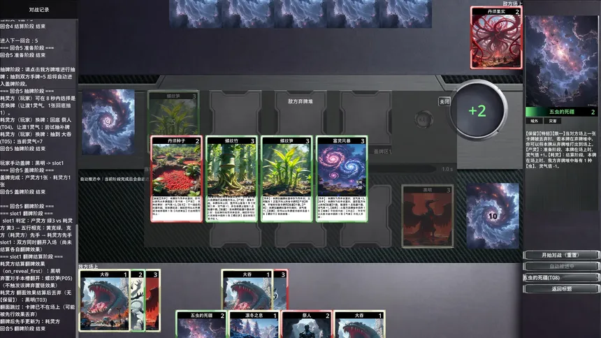 Spiritus TCG blends classic Five Elements strengths and weaknesses with Yin, Yang, and Chaos in one reveal and turn-order system. Each round moves through prep, draw, mulligan-style swap, face-down placement, simultaneous reveals, and multi-step resolution.