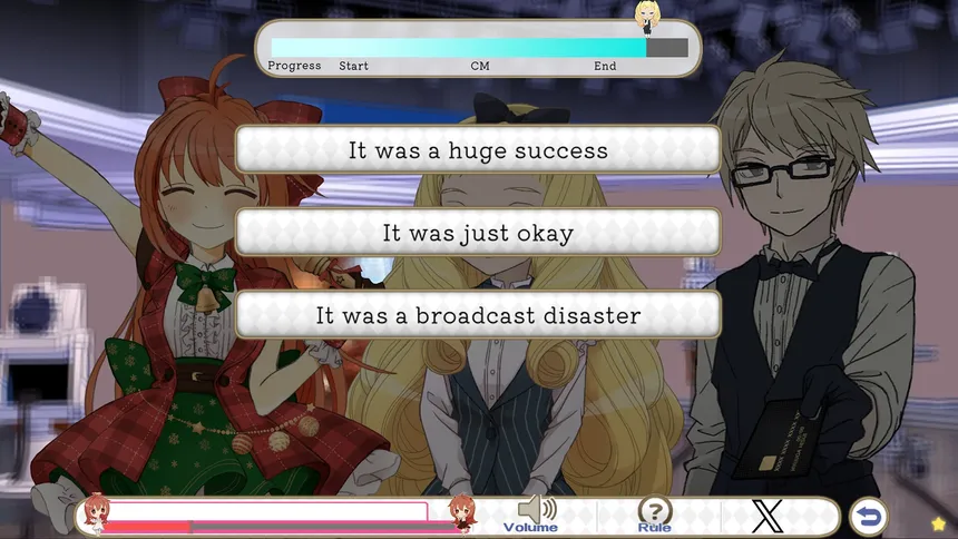 You are an AD intern at a TV studio aiming to secure a job offer. During a live talk show, you must give directions using cue cards. Convey information based on the situation to keep things running smoothly, boost audience favorability toward the guest, and earn your offer through your performance.