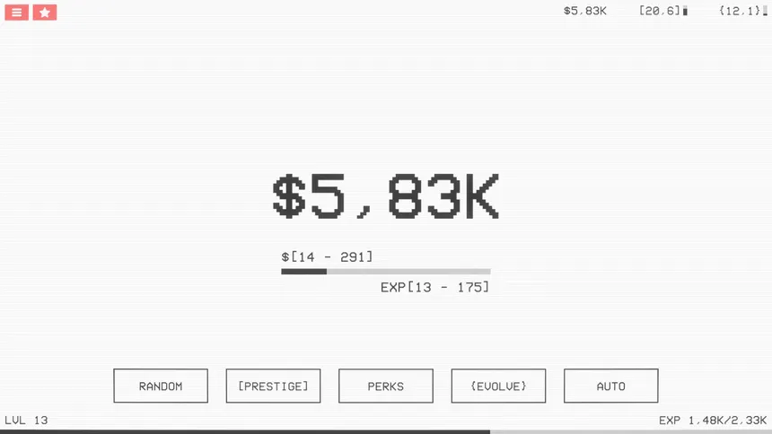 Idle кликер игра с рандомными значениями и 2,000+ улучшениями. Рандомные улучшения, престиж, перки и множество других особенностей!