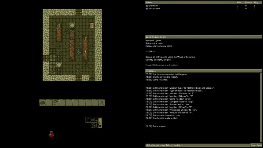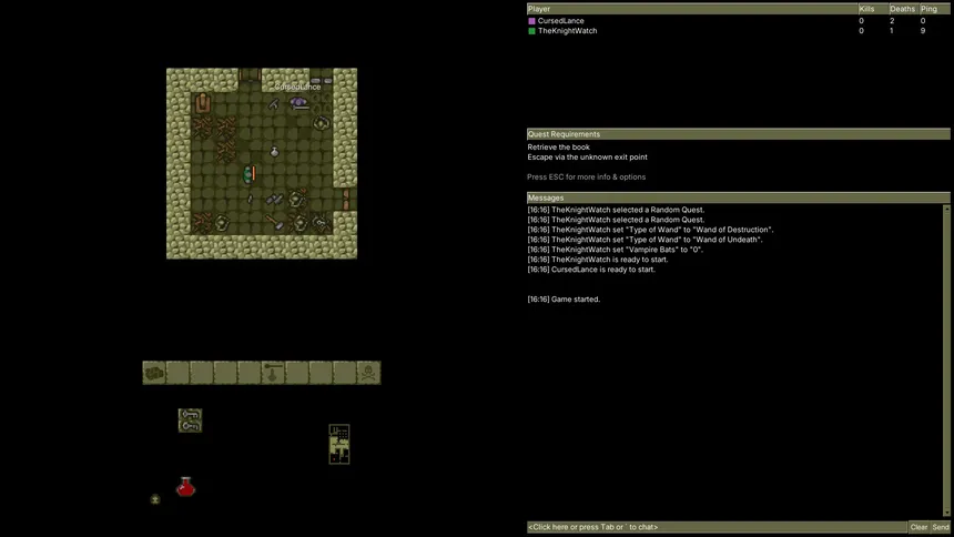 A free PvP multiplayer game featuring brave knights who must wander deep into dangerous dungeons and pursue various goals. Explore the randomly generated maps, fight zombies, vampire bats and other knights, and race to be first to complete your Quest.