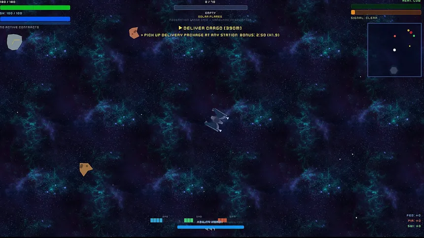 One wrong delivery can start a war. A top-down 2D roguelike space cargo hauler where you navigate faction politics, manage your power budget, trade contraband, and fight to survive across 3 deadly sectors. 2-4 player competitive multiplayer.