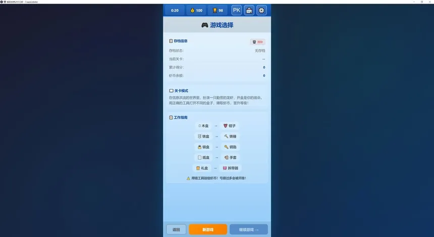 A casual life-sim portrait game! Tap continuously in two modes: Story—compete with 99 coworkers to open mystery boxes for surprises (even a partner!). Competitive—real-time 1-8 player box-packing battles where speed and strategy decide the outcome.