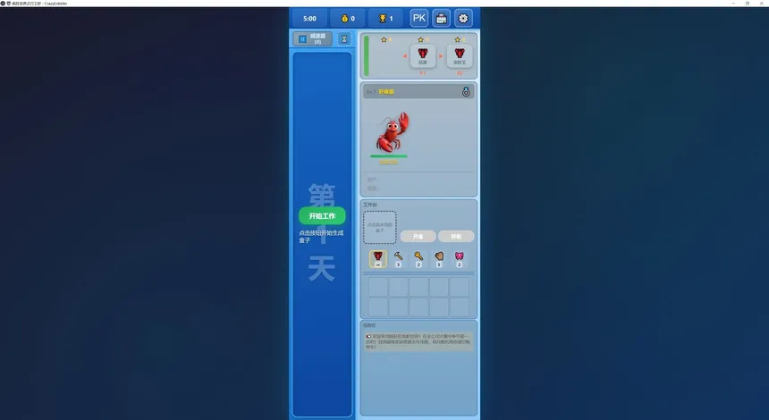 CrazyLobster — игра от компании Shenzhen Yiling Industrial Design Center, разработанная для платформы PC. Проект совмещает в себе такие жанры и элементы, как симулятор и стратегия. Дополнительно игроки выделяют такие особенности игры, как казуальная игра, симулятор, управление ресурсами и сатира. Вам будут доступны как одиночные, так и многопользовательские игровые режимы, такие как «для одного игрока» и «для нескольких игроков».