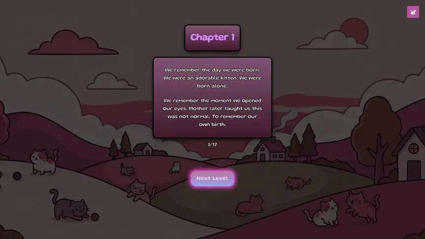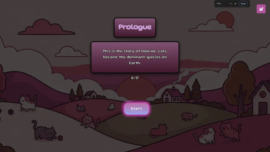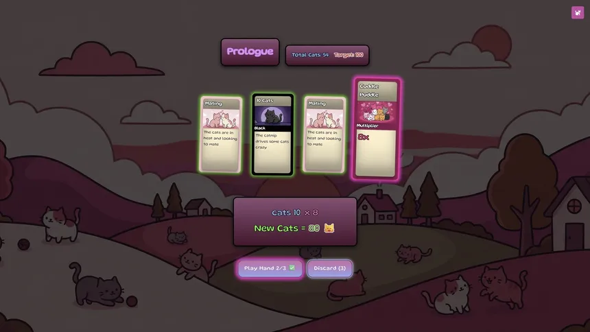Kitty Krush is a cozy, cat-themed story about a hive mind cat civilization that enslaves humanity. Wrapped up in a simplified deck-builder, unlock chapters with each round of play. Based on a true story.