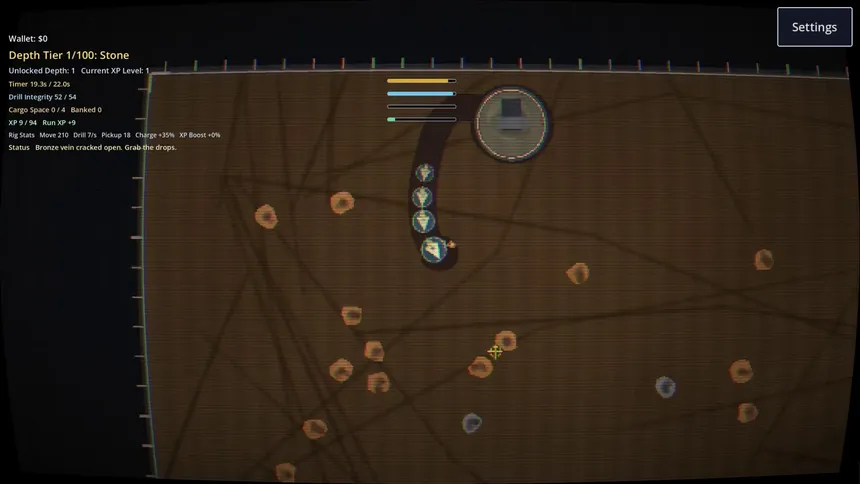 A run-based mining incremental where you steer a drill rig, bank ore, unlock deeper tiers, and turn fast dives into permanent upgrades.