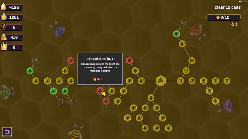 Apiary in Flow is a strategic incremental game about placing bees in a hive to build efficient honey-gathering chains. Unlock new bee types and spend your harvest on permanent skill tree upgrades!