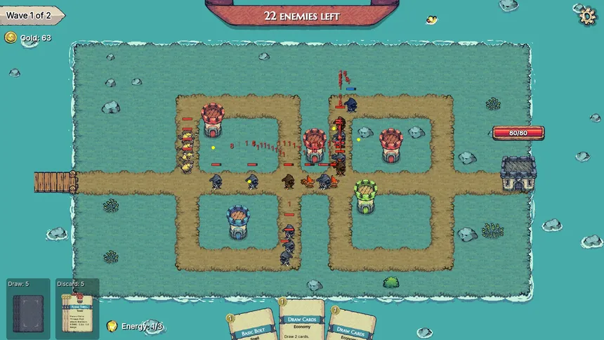 Protect your Bastion one card at a time in this roguelike tower defense deckbuilder. Deploy turrets, cast spells, and craft devastating combos to hold back bloodthirsty monsters and remain Unfallen.